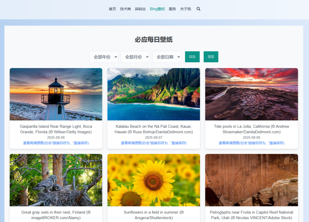 花了点时间做了个插件,把本站的 Bing壁纸 模块完成了本地化部署,之前通过框架调用了别人网站,现在展示效果完全本地化。