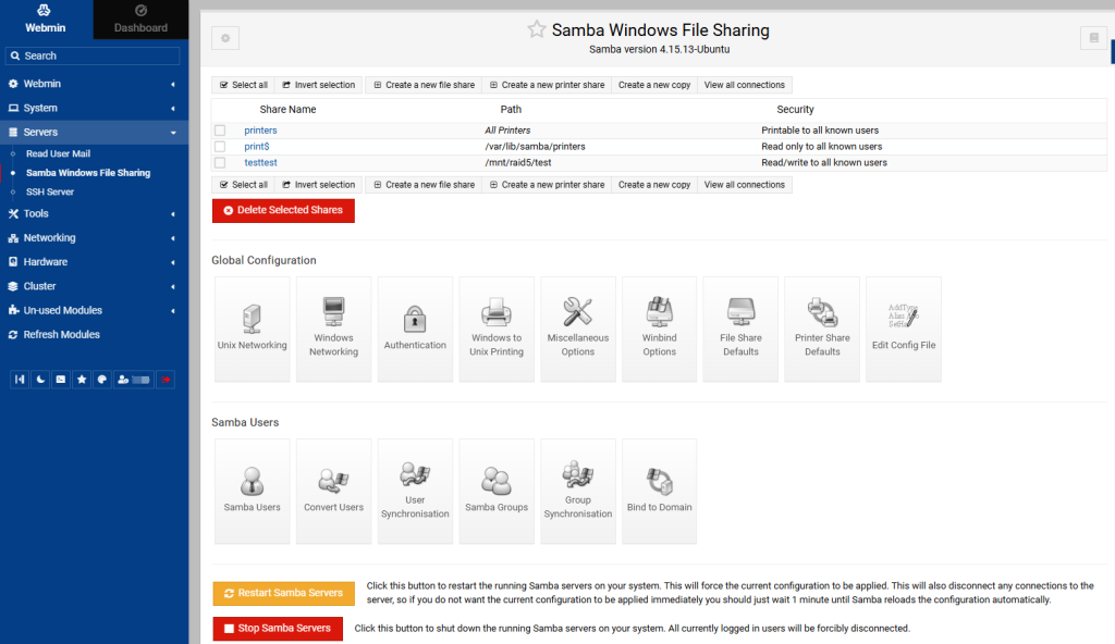 通过Webmin结合Samba实现浏览器在线图形化管理linux服务器的smb协议文件共享服务。