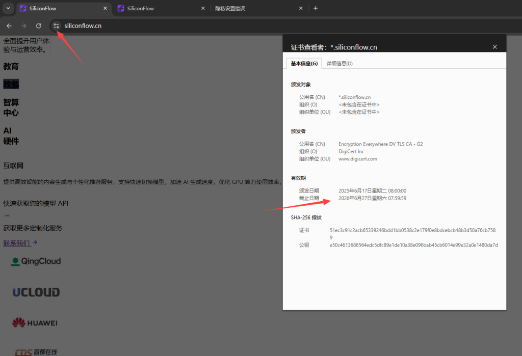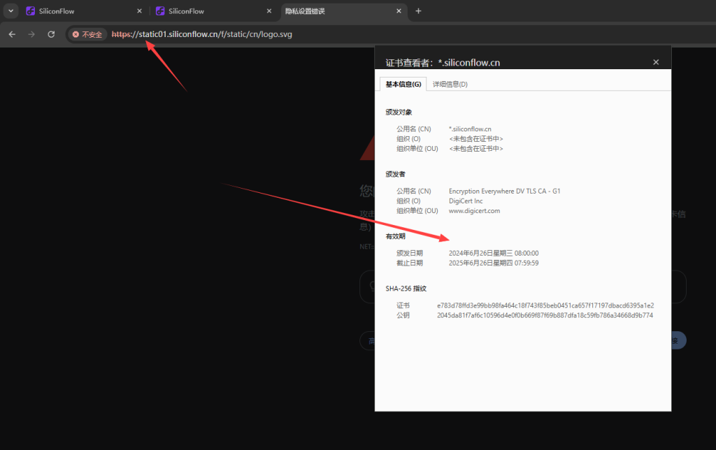 硅基流动崩了!! 6 月 26, 20258 月 17, 2025 硅基流动崩了,貌似原因是ssl证书过期导致。主站证书更新了,资源所在服务器的证书貌似忘记更新了。一个提供AI接口的商业服务公司,出这种低级错误也是牛的。 <span class="nav-subtitle screen-reader-text">Page</span> Previous Post为本站添加多语言实时翻译服务Next PostWordPress 全屏页面模板